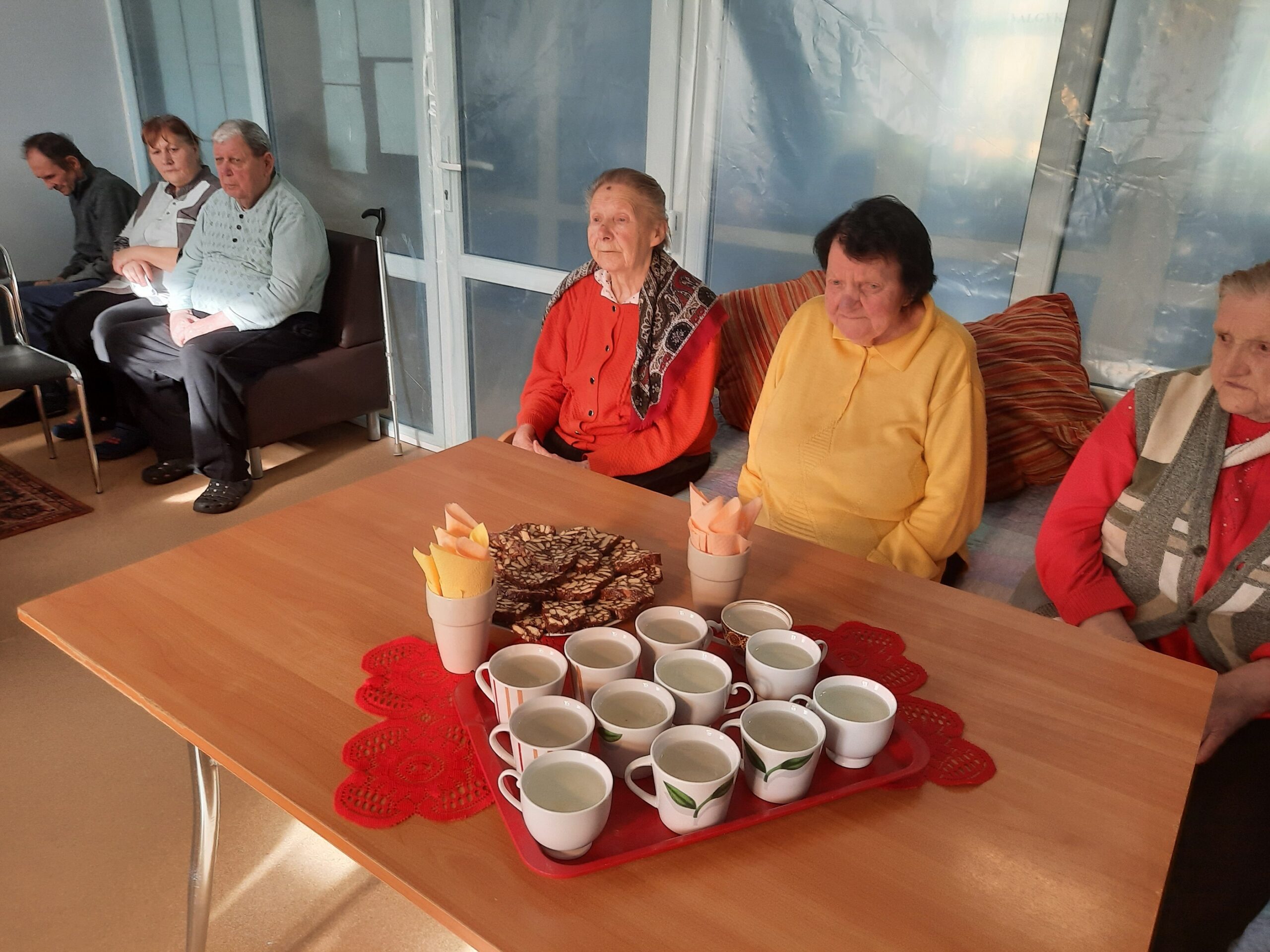 Socialinė darbuotoja Vilma centro gyventojus pakvietė į popietę, kur buvo pasveikintos dvi Kazimieros (vienos iš jų gimtadienis sutampa su varduvėmis) ir Kazimieras. Pavasario sutiktuvės vyko smagiai šnekučiuojantis prie šilto arbatos puodelio ir gardaus pyrago.